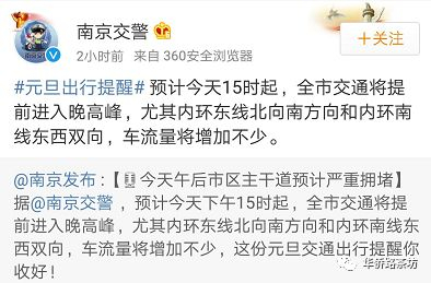预警2:我市中心城区的中山东路东西双向、汉中路东西双向、中山路北向南、中山南路南向北、华侨路东西双向、洪武北路北向南等新街口周边道路通行条件不容乐观,预测到时候拥堵延时均超过2.0,达到严重拥堵级别。