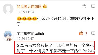 有微博网友爆料:G25六合段已经堵了十几公里