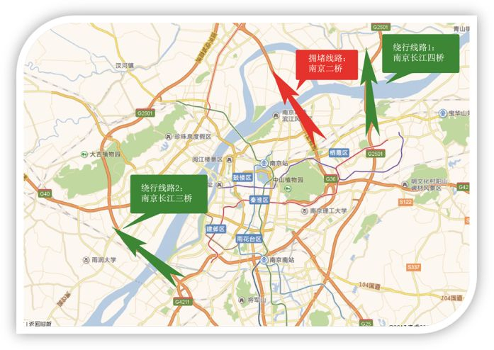 南京市区过江的小伙伴,请尽量避开南京长江二桥(如图)