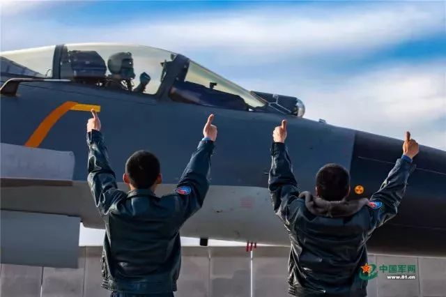 “金头盔-2017”空军对抗空战竞赛考核,战机滑出,飞行员为战友鼓劲加油。杨盼 摄影