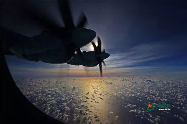 南海上空白云朵朵,运-9飞机在浩瀚的大海深处航行。刘畅 摄影