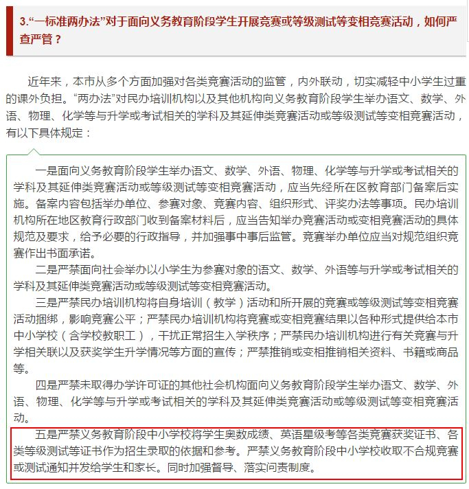 详细请点→民办机构“一标准两办法”解析:义务教育培训“三严禁”,不得向社会办小学生学科竞赛