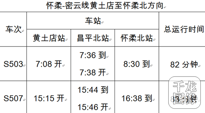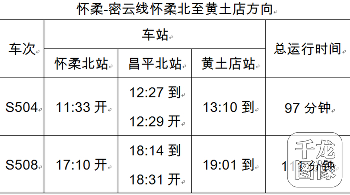 据介绍,怀柔-密云线每日开行黄土店站至怀柔北站市郊列车2列,开行怀柔北站至黄土店站市郊列车2列。