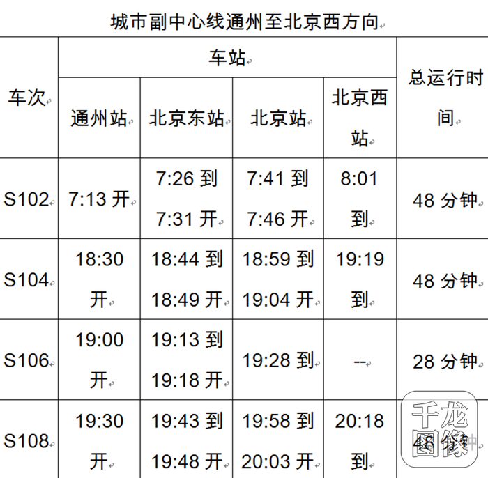 受2017年12月28日铁路全路实施新的列车运行图影响,12月31日城市副中心线仅开行S103次、S108次,其他6列车停运。自2018年1月1日起恢复正常。