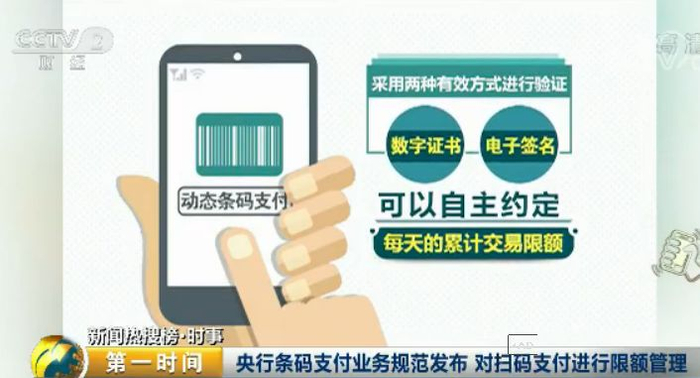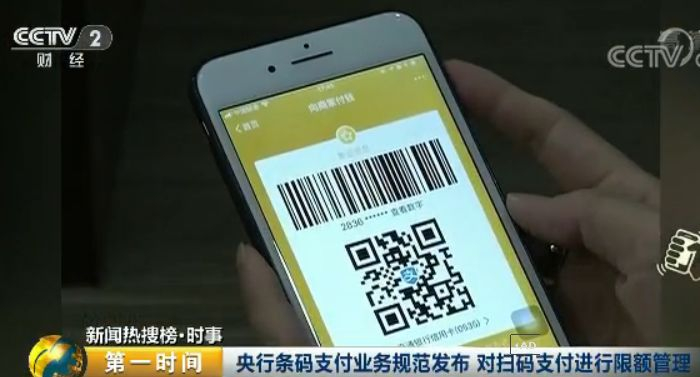 央行条码支付业务规范发布 对扫码支付进行限额管理12月27日,中国人民银行正式发布条码支付业务规范和技术规范等文件,明确支付机构提供条码支付服务,必须持牌经营,同时将根据风险防范能力的不同,对扫码支付进行限额管理。