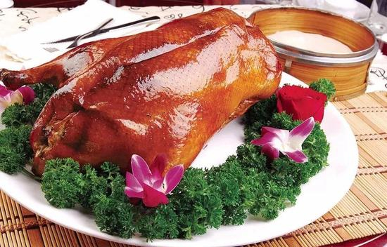 不仅如此,烤鸭也有不同的吃法,有海外媒体还专门介绍过:脆皮蘸糖,鸭肉蘸酱,有些还会在荷叶饼上涂上蒜泥。中国饮食精细、丰富的特色通过烤鸭可见一斑。