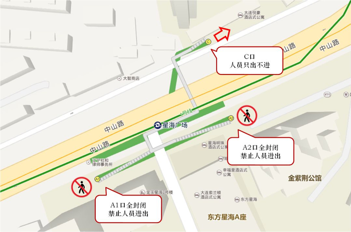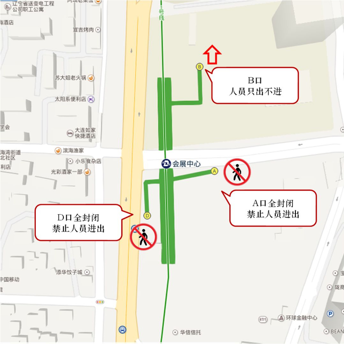 特别提醒广大市民:根据公安机关要求,为确保地铁大客流乘客安全,20:10至21:30,地铁1号线星海广场站A1、A2口,会展中心站A、D口关闭,星海广场站C口、会展中心站B口半封闭,只出不进。市民可以步行至附近的大医二院和富国街站进站乘车;当大医二院、富国街站人流过大时,车站将根据现场情况启动大客流应急预案,对车站进行临时管制或者限流,请乘客听从车站广播和工作人员引导,确保人身安全。