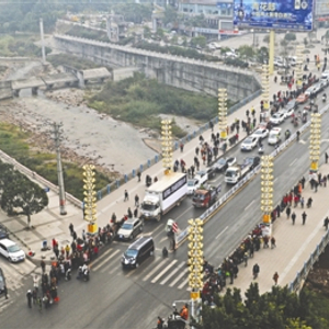 出殡的队伍从古蔺县新体育中心沿金兰大道通过,沿途上千名自发前来为余芬送行的群众,沿街边站立,手里举着悼念余芬的布幅:“你不认识我,我却记住了你。”