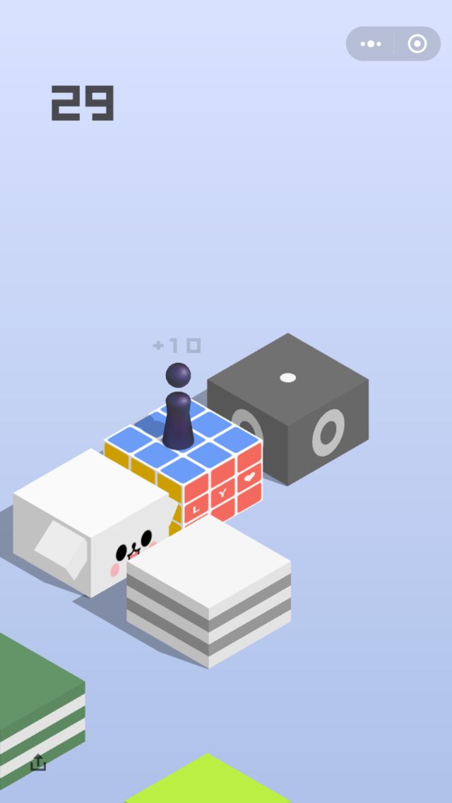 4、跳到魔方停一会儿,魔方会旋转修正,并且加10分;