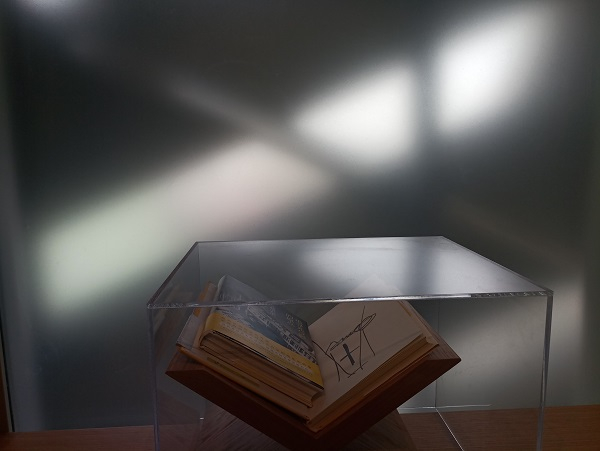 玻璃箱中放置的为安藤忠雄所作《追寻光与影的原点》