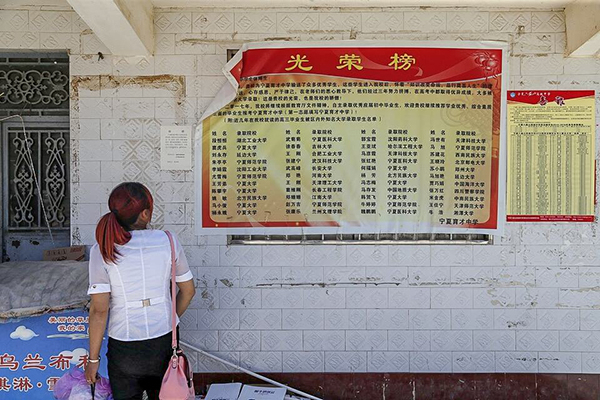 西吉县平峰中学张贴的“光荣榜”,来自平峰中学并最终走进大学校门的学生名字被记录在上面。