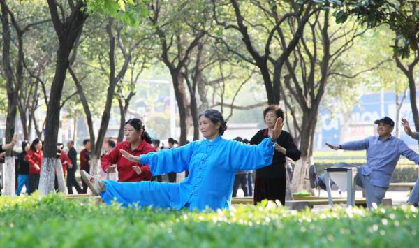 长三角地区老龄化水平高于全国平均水平,但是增长率低于全国平均水平。图为2017年4月23日,在江苏省南京市鼓楼广场晨练的老人。 东方IC 资料