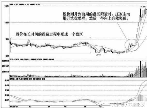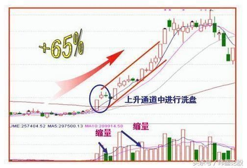 第一段,这个理解起来也很简单。主力刚吃满一肚子货,之前股价也涨了不少了,里面获利盘也有一些了,同时越到建仓后期,看好该股的人就越多,短线盘自然就会增加。这个时候,进行洗盘,是主力一个非常好的选择,既可以清洗清洗里面的浮筹,训练训练他们的固定思维,还可以降低降低自己的成本,并且再拿点便宜筹码。