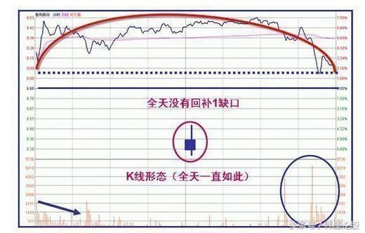 其形态特征是,K线形态表现为一根高开低走的长阴线,有时甚至是以涨停开盘.以跌停收盘.将上日的刚线完全覆盖.成交同时放出大量,日线圈上出现吓人的放量下跌的不良态势。该形态若股价处于低位,多为庄家吸筹.该股中线向好;若股价处于相对高位.只要股价第二天迅速企稳回升.则为庄家快速洗盘的一种形式。