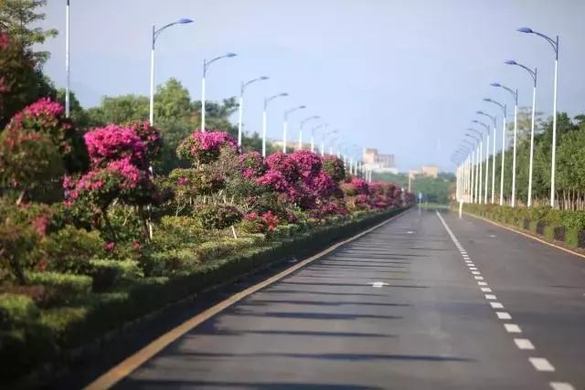 地质公园的“迎宾大道”——地质公园路此刻正值簕杜鹃盛开之时,一路花香沁人心脾,在这里跑步健身也能体会别样享受。