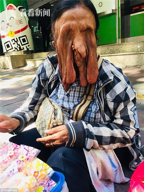 老妇名叫渊·汶密,出生在曼谷,自少女时期就患上这种怪病,面部起了疙瘩,逐渐变形。后来她搬去素林农村居住,在那里结婚成家,生下了一个女儿。几十年来,她的病情日益严重,甚至造成失明。数月前,女儿将她带至曼谷的家中照料,白天为了打发时间,老妇在一家银行门前摆摊售卖鲜花和饰品,她的怪异长相顿时引起了路人的注意。