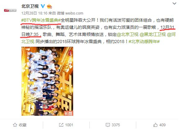 按照前两年的经验,很多没拿到“牌照”的一线卫视台们并不会就此罢手。于是便有了“12月30日提前跨年”、“视频网站直播跨年”等招数。浙江卫视就是个例子,其跨年演唱会在12月30日晚进行,而12月31日跨年夜放出的则是“思想盛宴”。