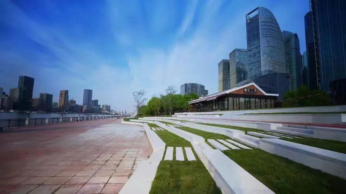 徐汇滨江北起日晖港,南至徐浦大桥,岸线长约8.4公里。望得见江,触得到绿,品得到历史,享得到文化,成为了其四大设计理念。既有驱车看江景的景观大道,也有多层次的立体活动空间。“西岸文化走廊”提升了空间活力,水陆联动激发了沿江水岸活力。
