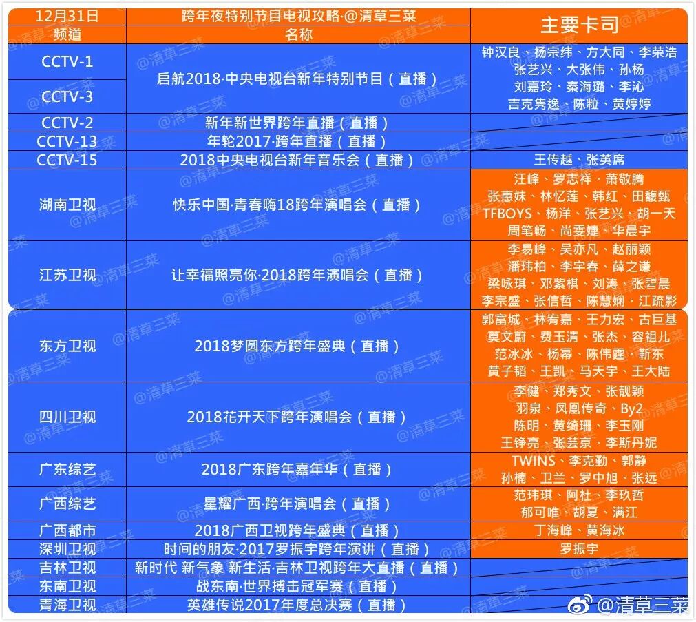 今晚跨年演唱会哪家强?你的爱豆在哪个台?节目单在此!
