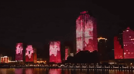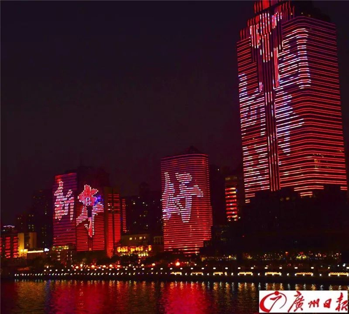 珠江边的灯光动画摆出了“新年好”的祝福(广州日报全媒体记者黎旭阳摄)▼