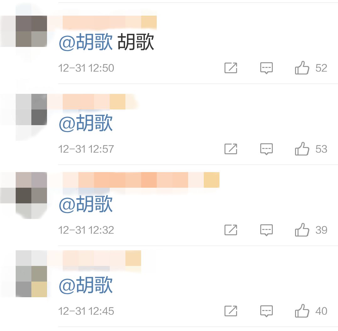 吾名璎璎在受到所有人鼓励后,也是有点受宠若惊,就好像普通的女孩子那样,顺手@了一下自己的爱豆,胡歌,希望能获得一点安慰