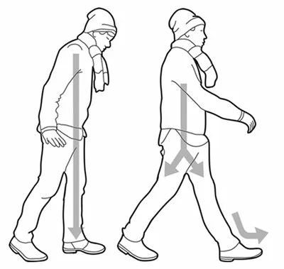 ☑ 如果在很滑的冰雪路面行走,尽量保证你的重心在前脚上,也就是所谓的“企鹅步”,或者侧行小碎步,更不容易摔倒。