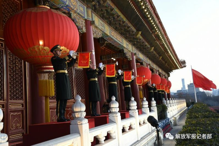 张海峰介绍说,这种形式的演奏最早是2014年的时候,国家欢迎外国元首的仪式上我们第一次演奏。第二次使用是九三大阅兵,我们用了七支礼号。这次用的是八只,2018年元旦凌晨的时候吹响,而且站在城楼上演奏,昭示着我们新时代一种新的气象,这是一个非常大的创新。