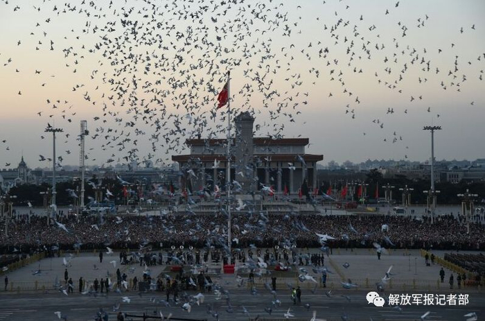 1月1日晨,北京天安门广场举行隆重的升国旗仪式,这是由人民解放军担负国旗护卫任务后,首次举行的升旗仪式。记者冯凯旋 摄