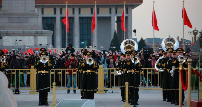 在2018年元旦天安门广场升国旗仪式上,解放军军乐团8名礼号手和60名演奏员先后演奏了《升旗号角》《国歌》和《歌唱祖国》,这也是解放军军乐团第一次参加天安门广场升国旗仪式。