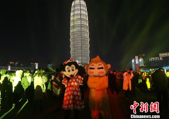 图为市民身着卡通服饰迎接新年。 韩章云 摄