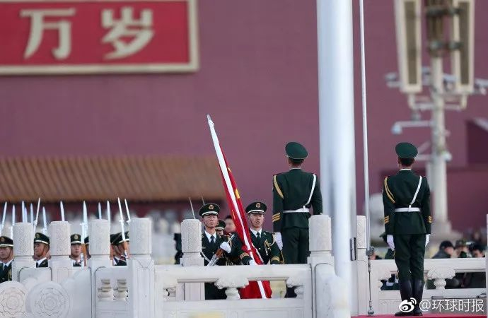 值得一提的是,升旗的历史在今天翻开了新一页——今日起,由中国人民解放军担负国旗护卫,武警部队担负国旗护卫成为历史。在升旗仪式开始前,在天安门广场举行国旗哨位交接仪式。