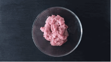 把肉洗干净后切碎,用1/4茶匙盐,2茶匙油和2茶匙浅色酱油腌肉几分钟。