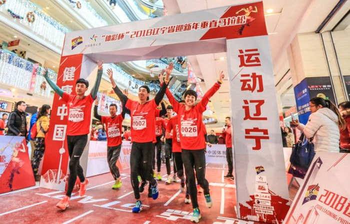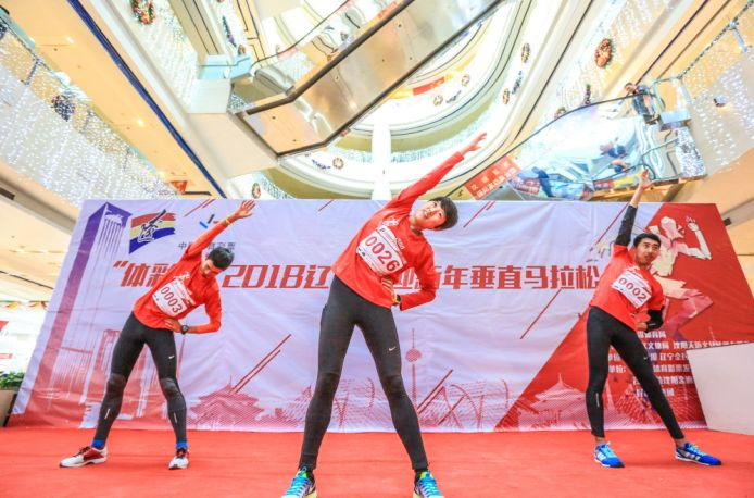 1月1日,由辽宁省体育局主办的“体彩杯”2018辽宁省迎新年垂直马拉松比赛在茂业百货沈阳金廊店举行。在2018年的第一天,近千名参赛选手身着组委会免费发放的T恤和背包,一同登高向上奔跑、登高远眺,表达对2018年的美好祝愿,每位完赛者都获得了组委会颁发的完赛奖牌和证书。