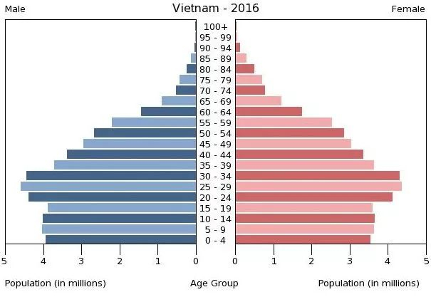 人口本就有9500万的越南,在过去五年中年均人口增长率为1.35%,共增加了484万人。最“诱人”的是,越南目前的年龄中位数是30.1岁,15-54岁之间的适龄劳动人口占比63%,中青年占人口多数的越南,将随着经济发展释放出较大的内需。