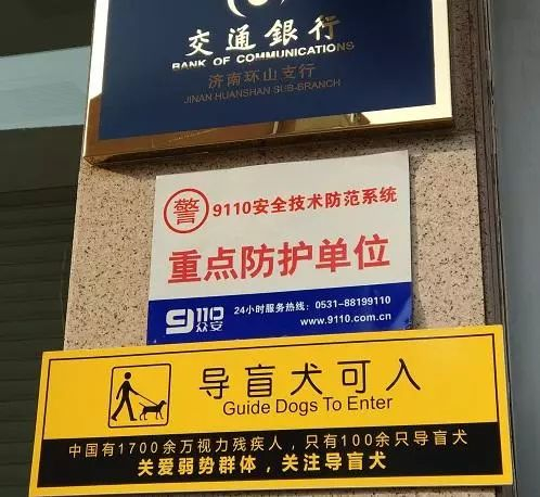 1月1日,在济南市环山路南段一家银行营业点门外,悄然挂起一个“导盲犬可入”的牌子。小小的牌子虽然不起眼,但仍然引起了很多市民的注意。此前外地发生过多起导盲犬上公交车被拒绝的新闻,曾在全国引发热议。银行门前这一块“导盲犬可入”的牌子,让盲人和关心盲人的热心市民感到心里暖暖的。