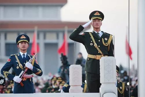 1月1日,北京天安门广场举行隆重的升国旗仪式。经党中央批准,自2018年1月1日起,由人民解放军担负国旗护卫和礼炮鸣放任务。这是任务调整后,人民解放军仪仗队和军乐团首次执行天安门广场升国旗仪式。