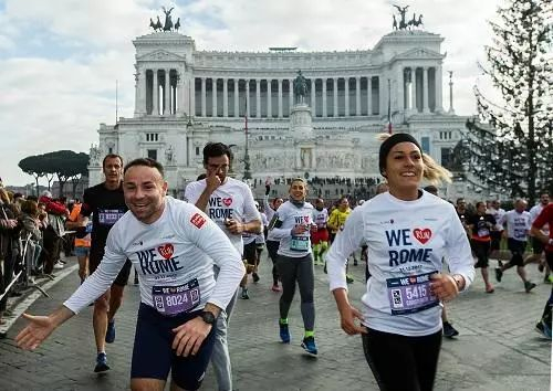 2017年12月31日,在意大利罗马,人们参加“在罗马开跑”活动。当日,意大利罗马举行“在罗马开跑”活动,参与者从卡拉卡拉浴场出发,围绕历史中心区的斗兽场、威尼斯宫、西班牙广场等标志性建筑跑步10公里,迎接新年的到来。