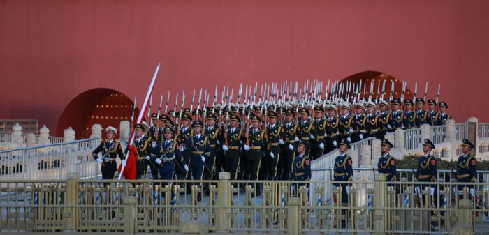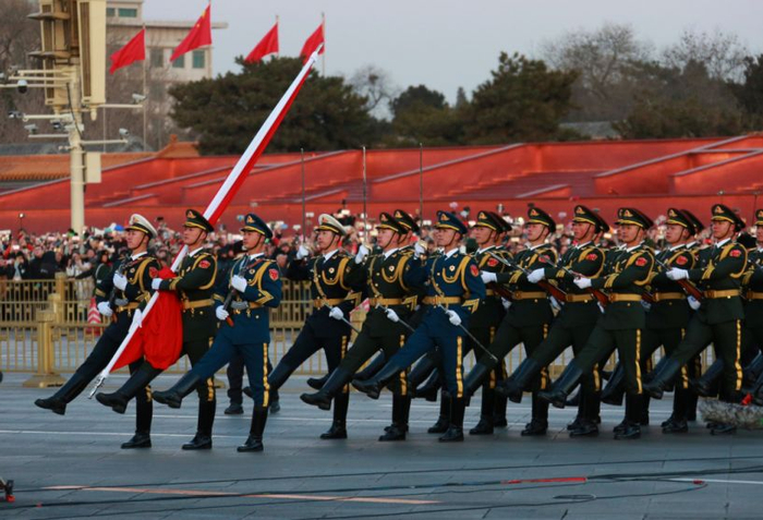 昨天(1日)早上7点36分,天安门广场升国旗仪式首次由人民解放军仪仗队和军乐团执行(平时是由天安门国旗护卫队执行)。当三军仪仗队护卫国旗走出天安门、跨过金水桥,迈上长安街,他们挺拔的身姿、矫健的步伐让每一位国人为之振奋。