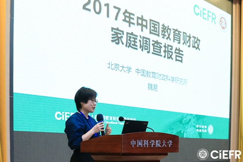 魏易发布调查结果报告CIEFR-HS是国内首个专门针对家庭教育支出的具有全国代表性的大型调查。2017年,北大财政所与西南财经大学中国家庭金融调查与研究中心合作进行的第一轮调查主要关注家庭的入学机会、政府补贴和家庭教育支出三大方面。调查内容包括0-3岁幼儿早教、3-6岁幼儿入园情况,6-16岁以及16岁以上在校生的在读情况、入学选择、家庭教育支出和政府补贴。其中,家庭教育支出主要包括校内教育支出和校外教育支出两部分。