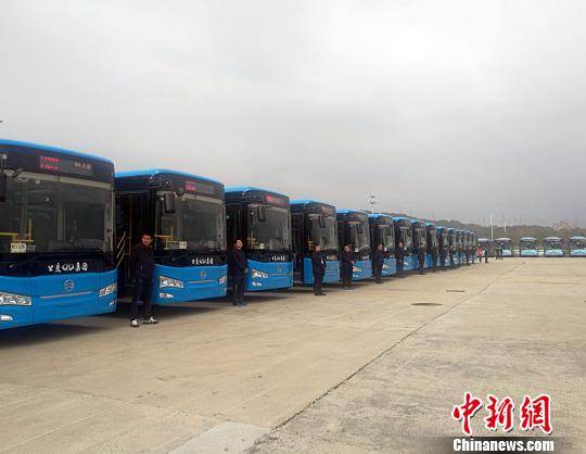 图为2017年12月29日上午,由福建省新能源汽车推广应用和产业发展联席会议主办的“清新福建绿色出行”新能源公交车推广应用集中上牌交车仪式在福州举行。