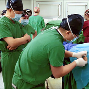 12月18日早上,产妇被推进手术室。作为一例罕见的高危孕产妇剖宫产病例,由于产妇不能平躺,麻醉体位只能采取右侧45度半卧位姿势,这无疑又给麻醉的实施增加了难度,经李士通、陈莲华、连明医生合作,最终顺利完成硬膜外麻醉。