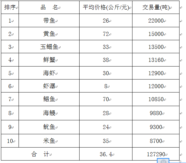 排在市场十大水产品交易量第三位的则是由上年的黄鱼,变动为今年的玉鳎鱼,玉鳎鱼2017年平均每公斤价格为33元。