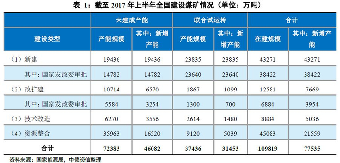 需注意的是,根据中债资信统计,国家能源局和国家发改委网站上披露的2017年新核准的在建煤矿约1.2亿吨(上半年约0.7亿吨,下半年约0.5亿吨),而这部分产能并未体现在国家能源局公布的2017年上半年在产或在建煤矿产能名单中,考虑未批先建矿井多为大型现代化矿井,建设进展较快,部分甚至已经建成,预计未来投产进展相对较快。
