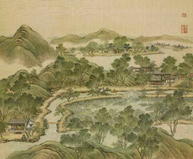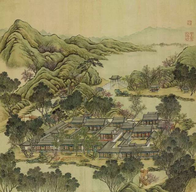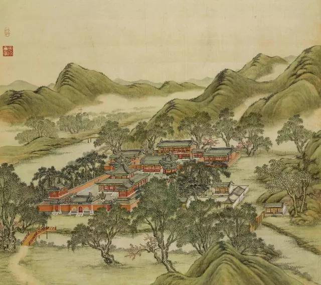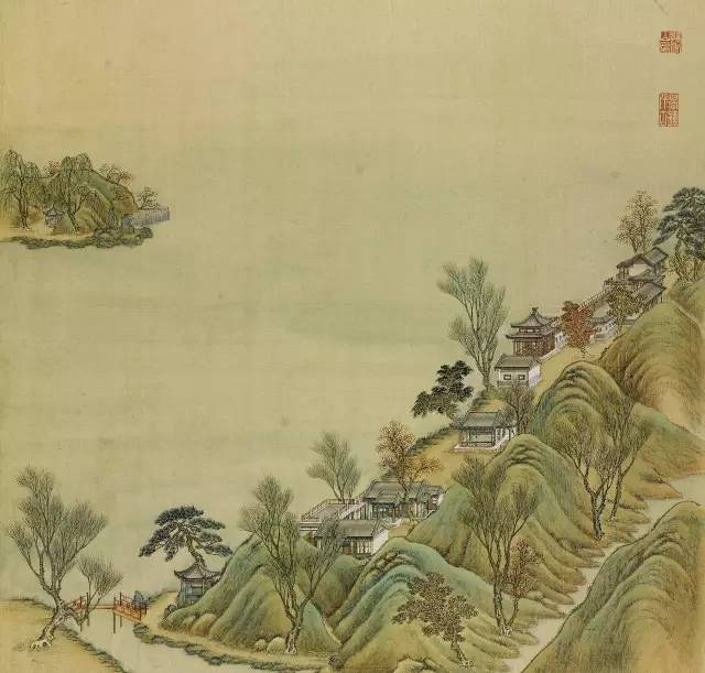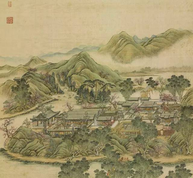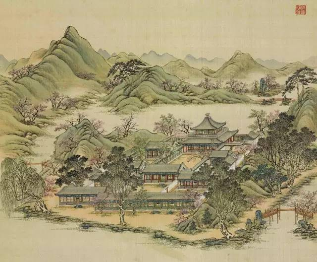 远山烟岚,近水楼阁。