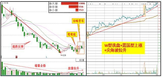 个股前期连续下跌后,逐步缩量释放上方抛压,回踩8.38元附近企稳,而后震荡整理过程中,量能逐步释放进行反弹,并出现了鸳鸯底和双峰贯耳K线形态,放量收回5/10/20日等多根均线,多头力度明显,开盘后出现了W型洗盘,稍有回落就快速上攻,可见低开是为了吓唬获利盘和套牢盘。而后果然出现了震荡型上涨和尖角波放量拉升,上涨时放量而下跌时缩量,全天属于边拉边洗的状态,资金逐步进驻。今日资金净流入1716万(大单1006、中单556、小单153),个股处于震荡反弹阶段,目前均线有上拐迹象,后市看好。至于能否超过前期的高点,拭目以待,该股后期走势,就不在这里多点评了,会在选股文章持续跟踪讲解。