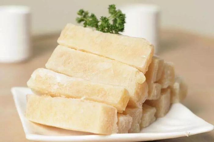 豆腐冻后,不知道为什么是蜂窝状。化开,切小块,与鲜肉、咸肉、牛肉、海米或咸菜同煮,无不佳。冻豆腐宜放辣椒、青蒜。我们那里过去没有北方的大白菜,只有“青菜”。大白菜是从山东运来的,美其名曰“黄芽菜”,很贵。“青菜”似油菜而大,高二尺,是一年四季都有的,家家都吃的菜。咸菜即是用青菜腌的。阴天下雪,喝咸菜汤。