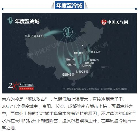 注:中国天气网年度城市天气之最榜单统计了31个省会级城市与5个计划单列市的天气数据,统计时间从2017年1月1日至2017年12月20日。