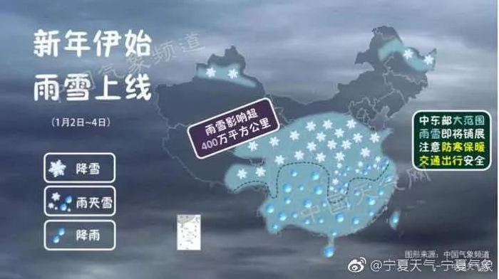 大家心心念念的大雪天就要来了,由于冷空气一波接一波,宁夏出现连阴雪天气,主要降雪在1月3日清晨到4日清晨,全区大部累计降雪量达小到中雪,部分地区出现中到大雪。此次降雪过程持续时间较长,气温持续下降,最低气温可达-18℃,大家注意保暖。