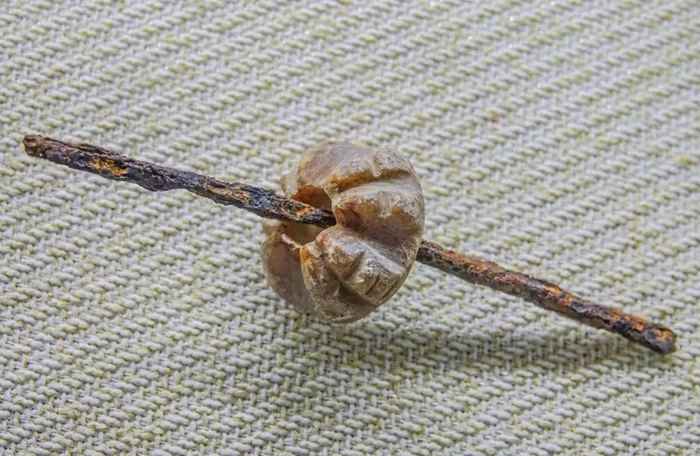 一座石岩,壁陡险峻,草木悬崖,如须髯成绺。转至其后,俯身下看,只见山石如坠,渊薮沉寂。