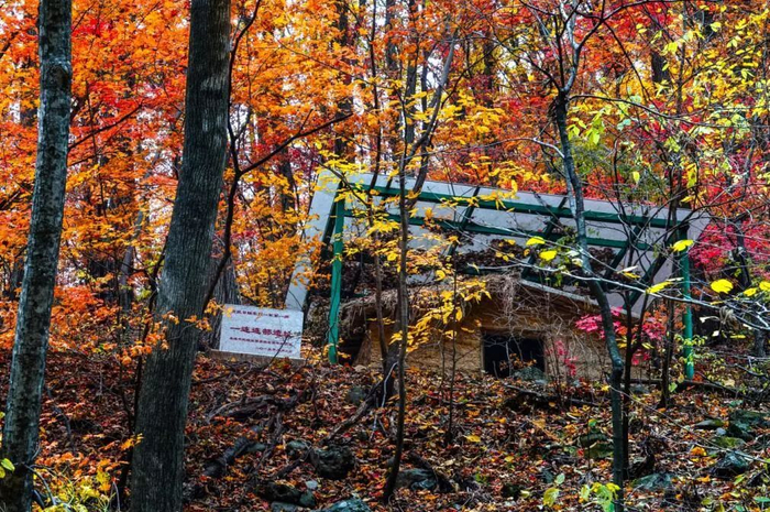 东北抗日联军第一军第一师一连连部遗址遮蔽在冰壶沟里层叠相掩的秋红中。